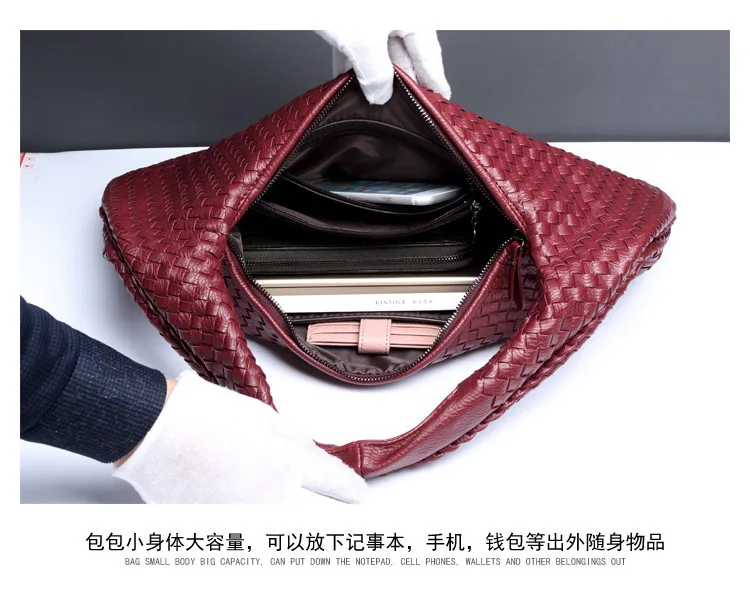 Hot Sale PU Leather Woven Women's Shoulder Hobo Bags Casual Fashion Handbags Capacity Travel Use zipper Closure for women